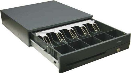 Модель Posiflex CR-4100G2 оборудована прочными металлическими держателями для банкнот, регулируемыми ячейками для монет и скрытым отделением для хранения купюр крупного номинала и документов. Конструкция рассчитана более чем на 1 000 000 циклов открывания.