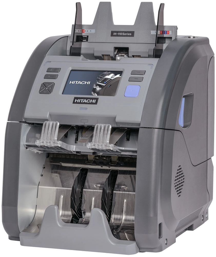 Hitachi iH-110 оснащен CIS-технологией двухстороннего сканирования образов банкнот, сенсорным дисплеем и лотком для сбора денежной пыли. Режим мультивалютного счета, детализация причин отбраковки на экране, скорость подсчета до 1300 банк/мин. Hitachi iH-110 произведен в Южной Корее.