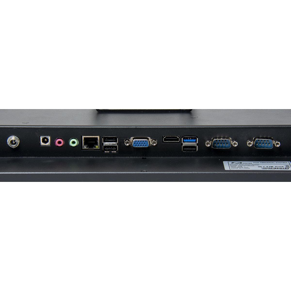 1 x HDMI; 1 x VGA; 2 x DSUB-9P (2 x COM можно подать питание 0V, 5V, 12V джамперами); 1 x 2-й монитор порт питания; 6 x USB (из них 2 шт. сбоку корпуса); 1 x Line out; 1 x Mic-in |